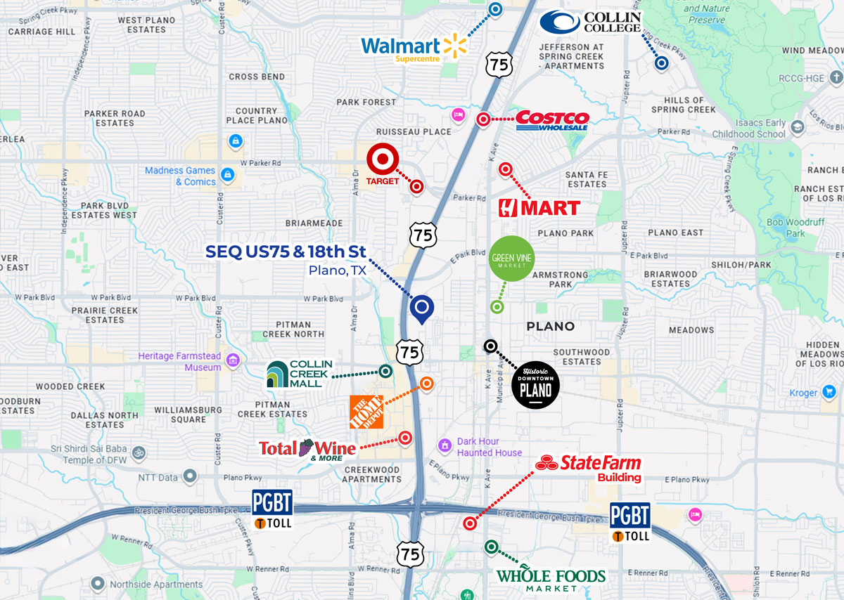 AddressSEQ US 75 & 18th St., Plano, TX